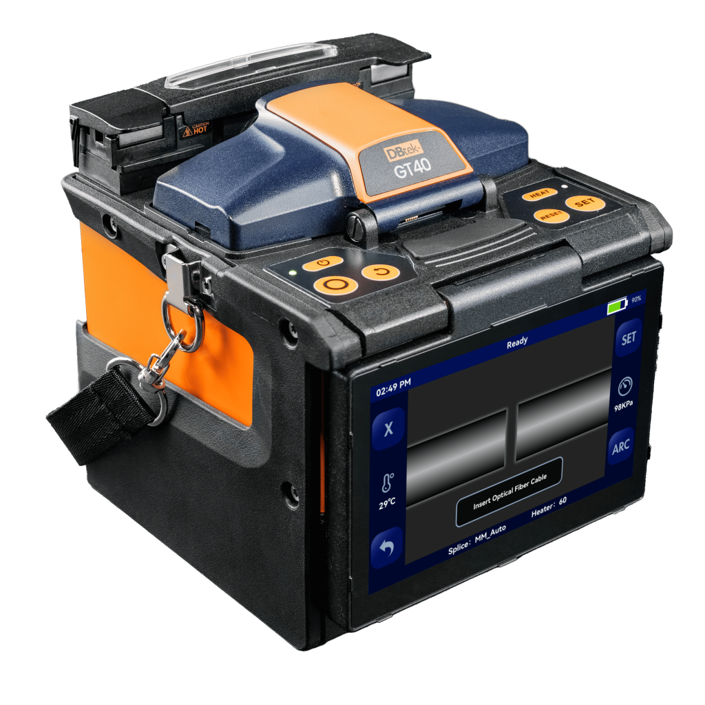 The GT40 Fusion Splicer is a next-generation active V-groove clad alignment splicer, engineered to deliver both speed and accuracy in the field. Featuring a 5-inch high-resolution touchscreen and an intuitive interface, it makes fiber splicing effortless for users of all skill levels. With 5-second splicing and a 13-second heating cycle, it ensures rapid, efficient performance in demanding environments.
